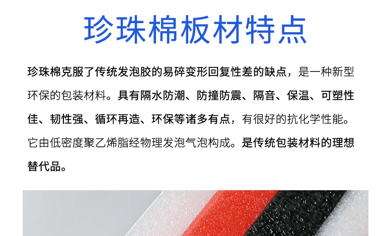 成都市美鑫包裝材料有限公司 成立于2011年,公司位于四川省成都市新津工業園,是一家新型的綜合性的包裝材料公司,產品深受新老客戶的好評。公司******于不斷提升EPE珍珠棉的生產技術和產品創新應用技術,逐步建立了嚴格的可視化管理制度和靈活的經營體制,不斷提升企業競爭力,公司產品只要分為四大類:塑料制品系列(epe塑料、塑料包裝材料、epe發泡、異形包裝等)。用于家具包裝,設備包裝、地板彩印鞋材和機械等各種電腦異形包裝材料。
